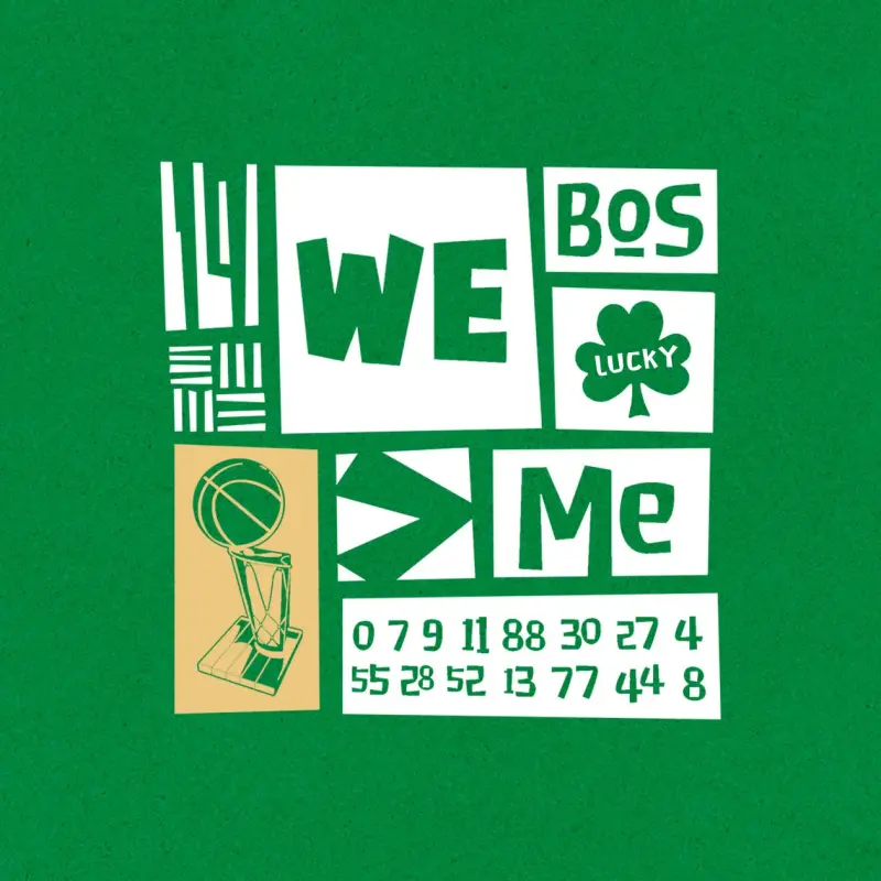KG的“WE>ME”让人印象深刻,而我们的球队文化也一直是团队至上。所以我把这句话作为了头像主体,加上了奖杯、19、地板、BOS、三叶草,以及球员号码的元素,组成了头像,希望双探花能带领球队早日拿下第19冠。