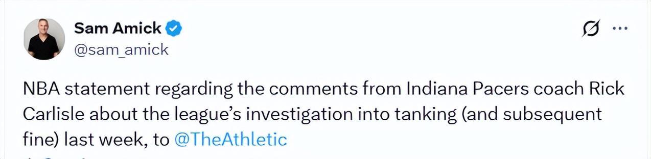 随后,NBA发言人向The Athletic记者阿米克发表声明,反驳卡莱尔对步行者调查过程的描述。